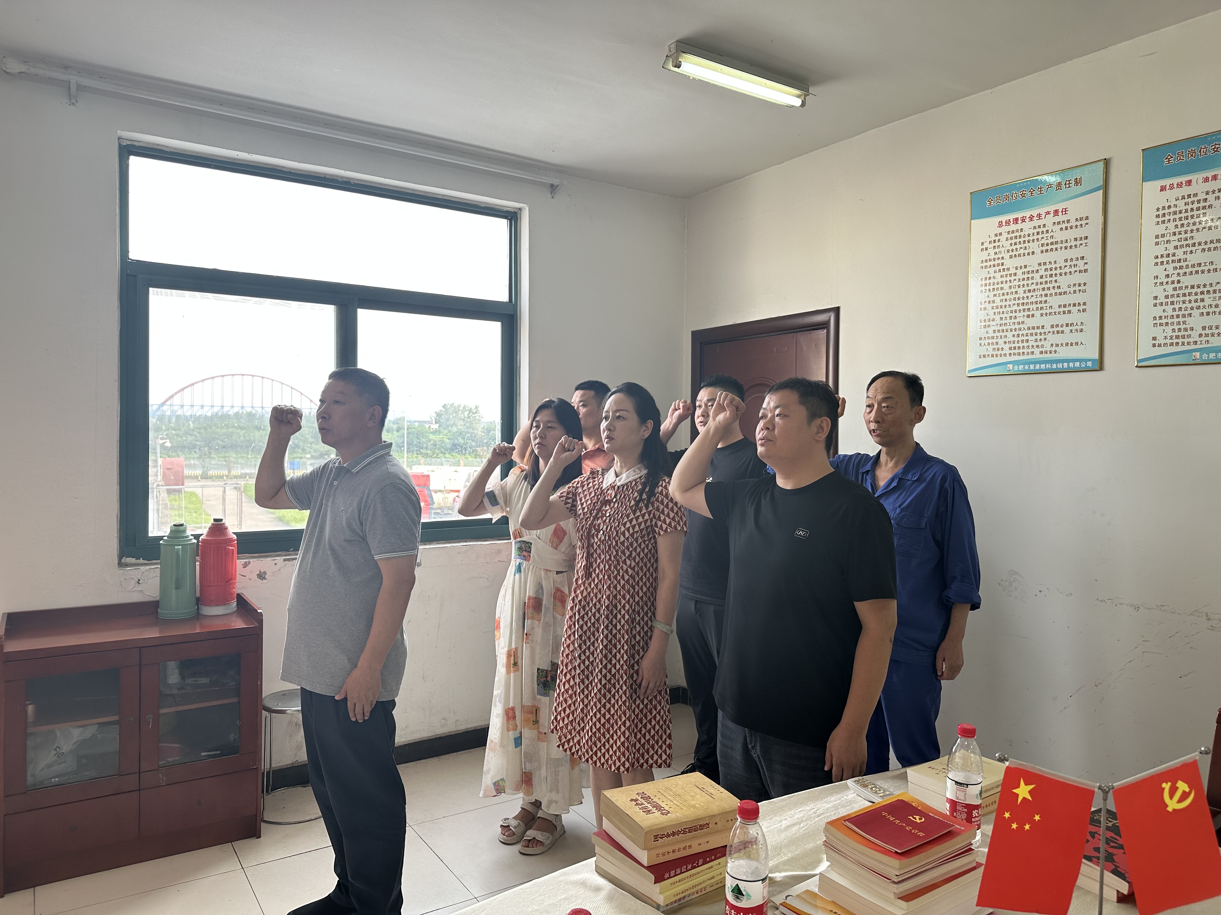 隨后,雙方黨支部書(shū)記相互交換了精心準(zhǔn)備的黨建書(shū)籍,在合肥聚源燃料油銷(xiāo)售有限公司黨支部書(shū)記的帶領(lǐng)下,全體黨員一同面向黨旗重溫入黨誓詞。