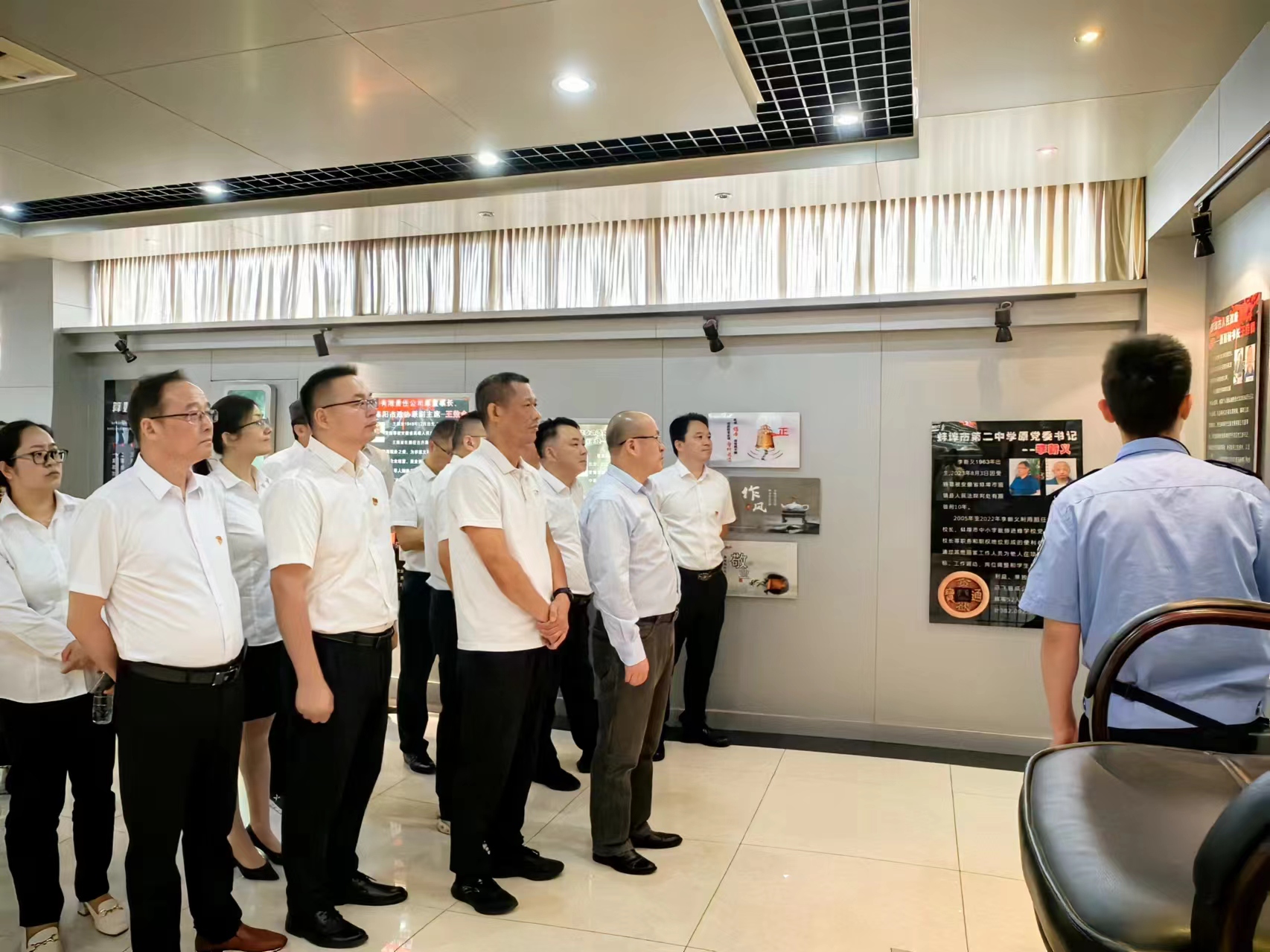 開展黨建共建支部聯學。組織支部黨員與酒店公司、資管公司聯合支部赴蜀山監獄開展警示教育。在警示教育廳,大家集中觀看了警示教育紀錄片《懺悔錄》,認真聆聽了監獄服刑人員的現身說法,講述自己從領導干部墮落為階下囚的過程,剖析自身失去自由的痛苦以及給親人和家庭帶來的傷害。通過“零距離”實地參觀、“面對面”現身說法、“沉浸式”警示教育,給公司黨員及關鍵崗位人員上了一堂生動的警示教育課,起到了極大的警示警醒作用。