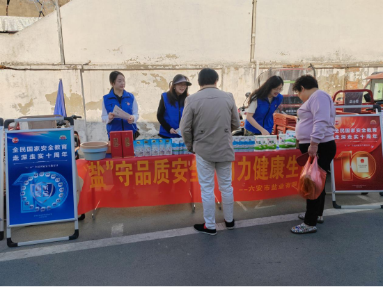 六安鹽業(yè)公司黨員志愿者走進(jìn)開發(fā)區(qū)小廟農(nóng)貿(mào)集市,設(shè)立普法宣傳點(diǎn),向居民宣傳國(guó)家安全相關(guān)知識(shí),普及食鹽安全知識(shí)。