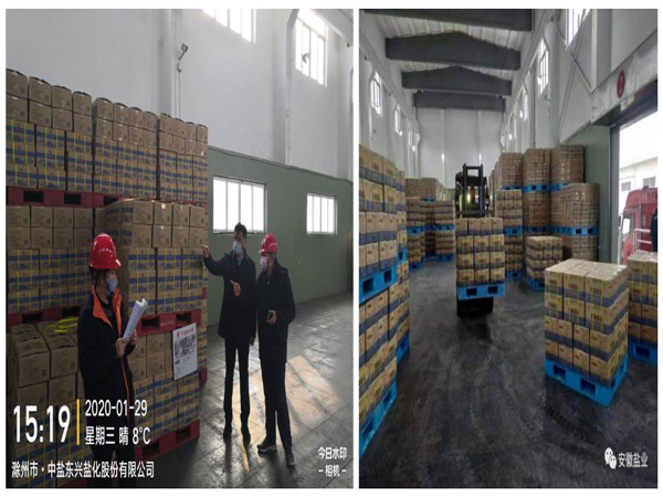 疫情如火,責任如山,充足的庫存是保障食鹽市場穩定供應的前提。為確保全省食鹽市場供應不斷檔不脫銷,安徽鹽業發展公司積極響應省鹽業集團公司號召,未雨綢繆,早安排早部署。在中鹽東興鹽化股份有限公司的積極支持下,克服運輸緊張、雨雪天氣、交通管制等不便因素,積極組織食鹽生產和調運。同時積極協調安徽省新型冠狀病毒肺炎疫情防控應急指揮部,緊急辦理了應急物資調撥專車通行證,為疫情時期食鹽運輸開辟了綠色通道,有力保障了民食工需。